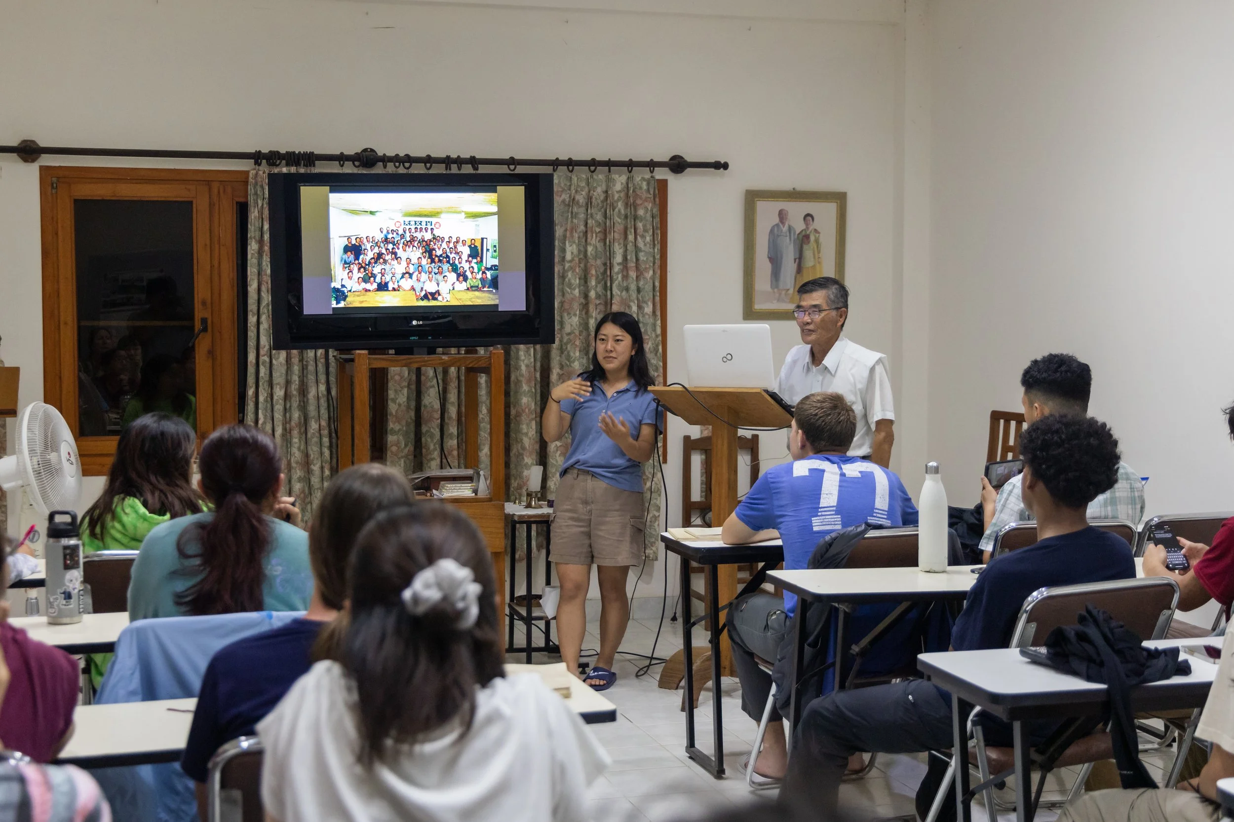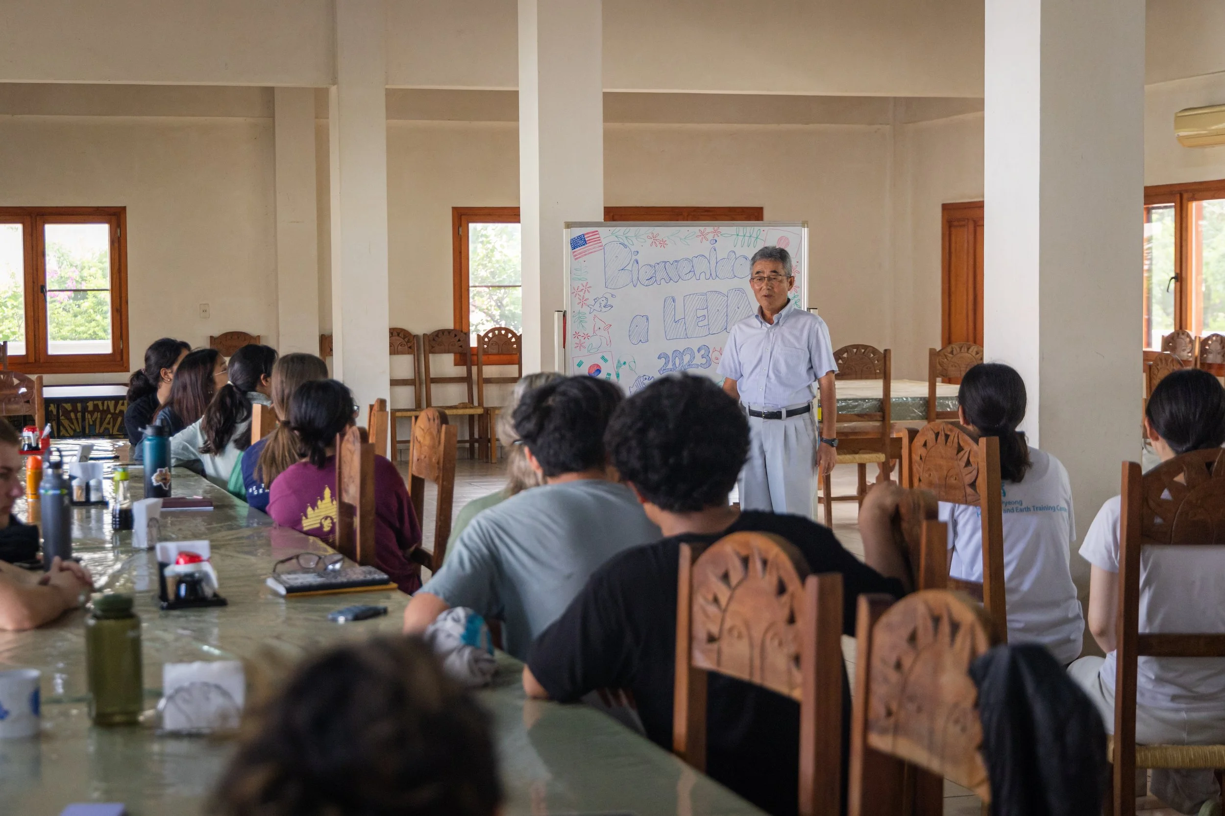 We spent the day listening to Mr. Sano, who talked about Rev. Moon's time in South America and his vision for Leda, which fruits we would soon experience. In the afternoon, the team also challenged their knowledge in a trivia show organized by the staff. We competed in topics like songs, Divine Principle, and how well they know each other, accompanied by some crispy fried alligator meat as a snack.