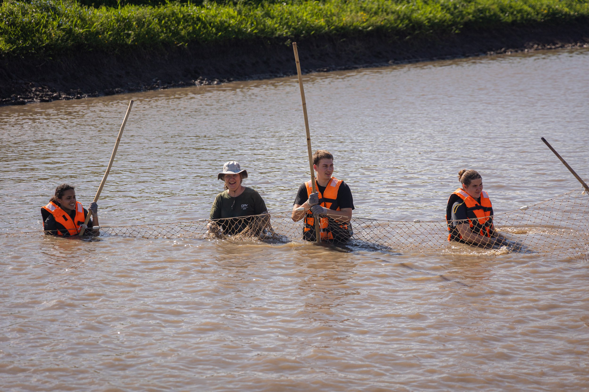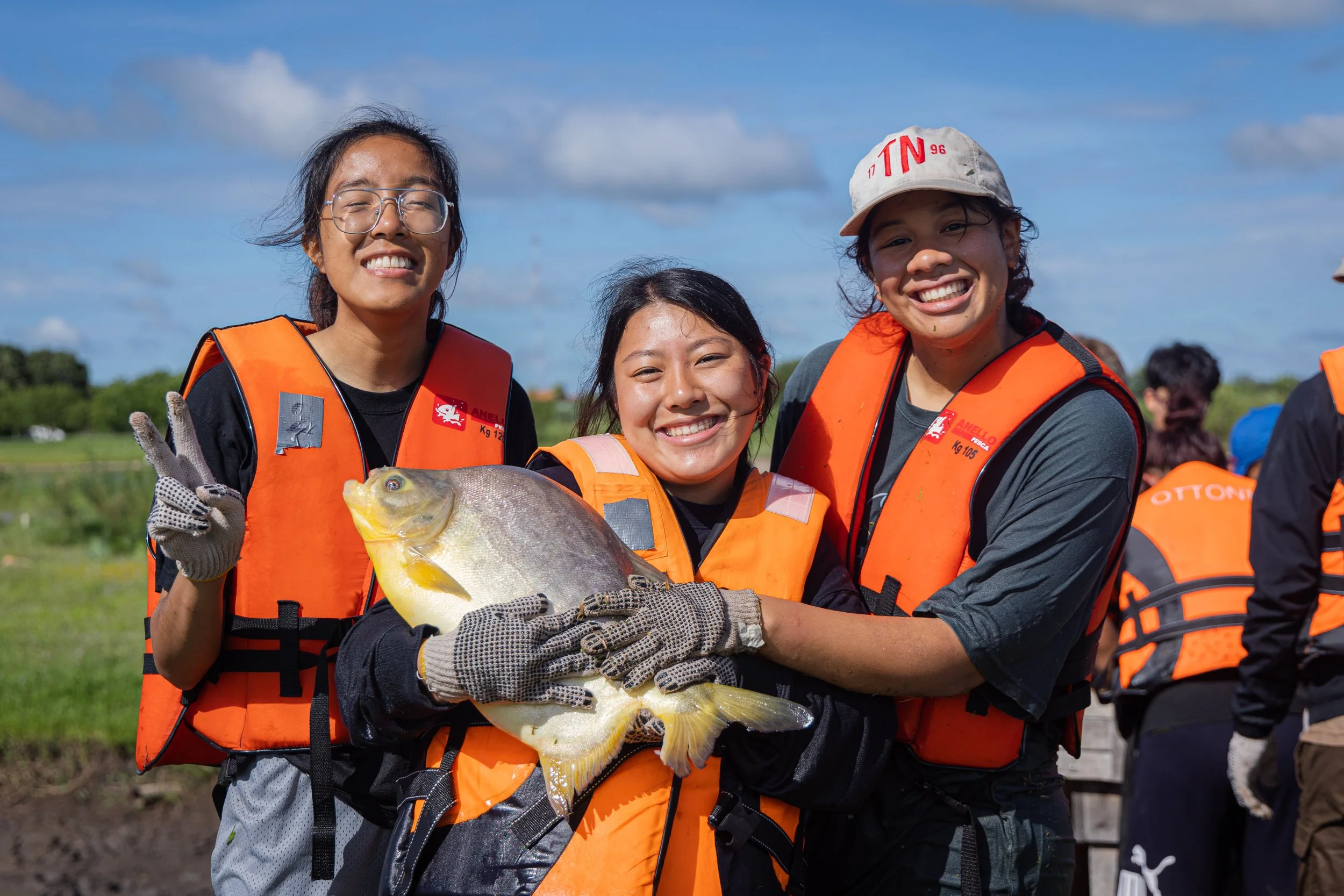 On the following day, our exploration of Leda continued. We started the day with an activity we had been looking forward to. Do you have an idea what it could be? The answer is fish harvesting! We had the fantastic opportunity to catch pacu and later learn the cleaning process. Excited screams and laughter filled the air as we walked into the pond. The water was up until our neck; however, we were determined to work hard and catch as many fish as possible. Our goal was to harvest 100 fish today, and we used a variety of net sizes, leaving them no escape. Some of us felt called to challenge ourselves by trying to catch them with our hands, only gloves on. In the end, we were successful, and our efforts were worthwhile. This activity was an excellent test of our patience and determination. These beautiful creatures are God's creation and won't surrender themselves with force. To catch them, we had to have a respectful attitude towards them, being gentle and calm, then we could be successful.
