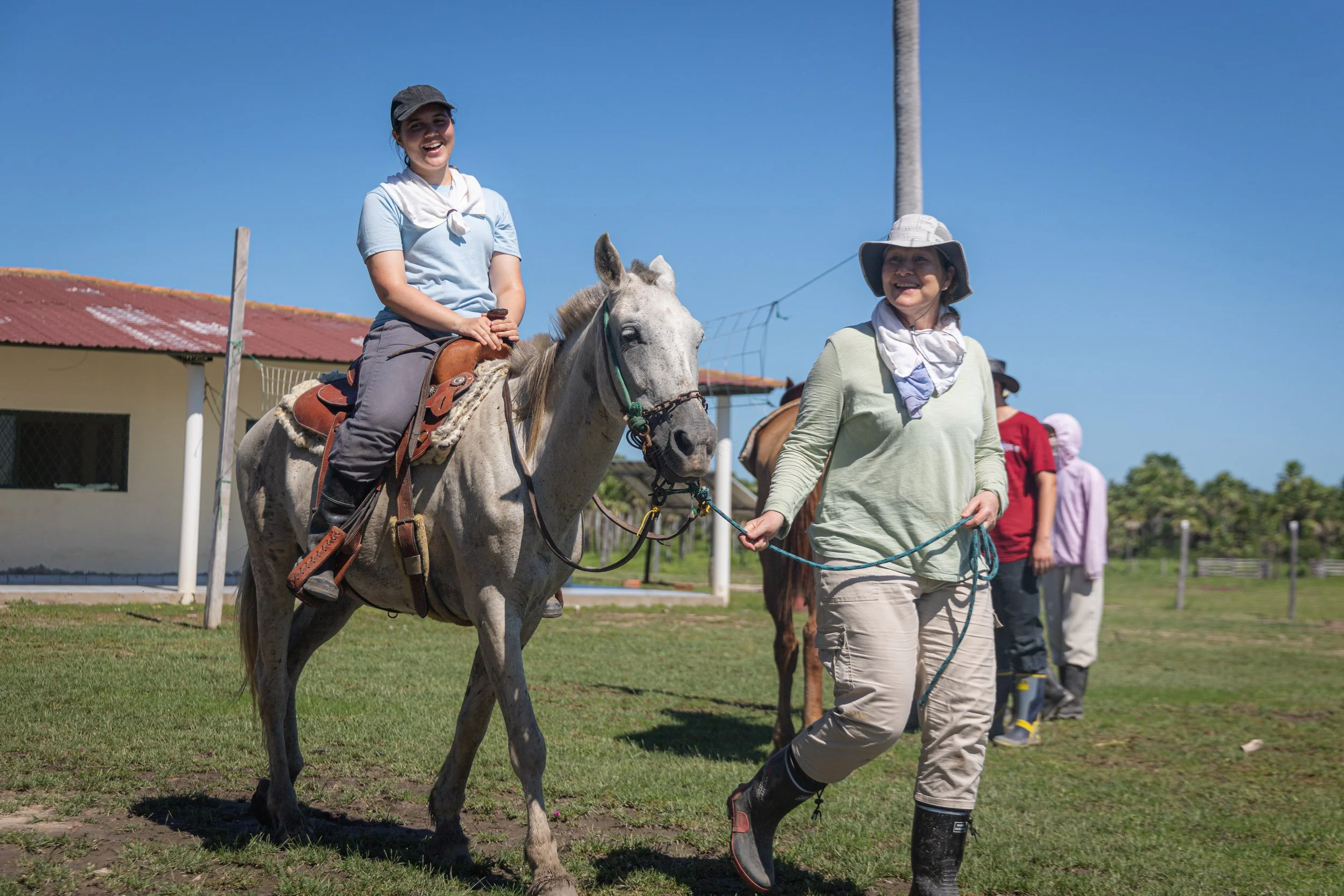 Believe it or not, there is still more to explore in Leda! The next day we visited Leda's cattle farm called Canaan. It was around 10 km from the headquarters, so we had to take a boat and a tractor to reach the farm. Traveling there, we were mesmerized by nature, seeing how much-untouched land Leda still has. Hundreds if not thousands of palm trees, wildflowers, butterflies, and dragonflies surrounded us. We experienced horse riding, first guided, then going by ourselves and seeing the huge cow horde. We were exhausted from the intense sun and took shade to have lunch together as a group, which gave us more things to be grateful for.